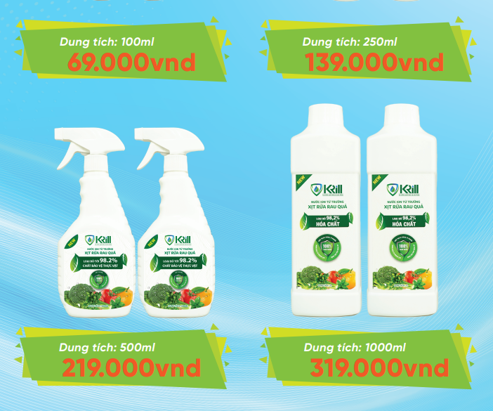 Nước Ion từ trường xịt rửa rau củ quả Krill – Bảo vệ sức khỏe gia đình bạn